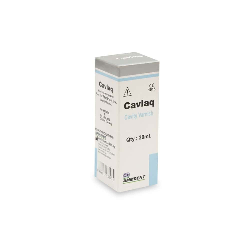 Ammdent Cavlaq Cavity Varnish is an alcohol-based cavity lining varnish designed to provide an effective protective layer over prepared cavities. It helps seal dentinal tubules, reducing microleakage and protecting the pulp from thermal and chemical irritation.