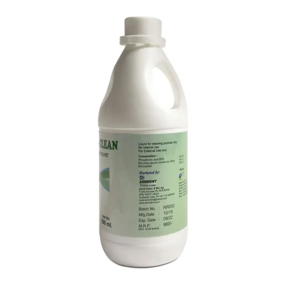 Ammdent Rust-O-Clean is a liquid cleaning solution formulated for the effective removal of rust, stains, and surface spots from dental, medical, and surgical instruments as well as compatible surfaces. It is intended strictly for external cleaning purposes.