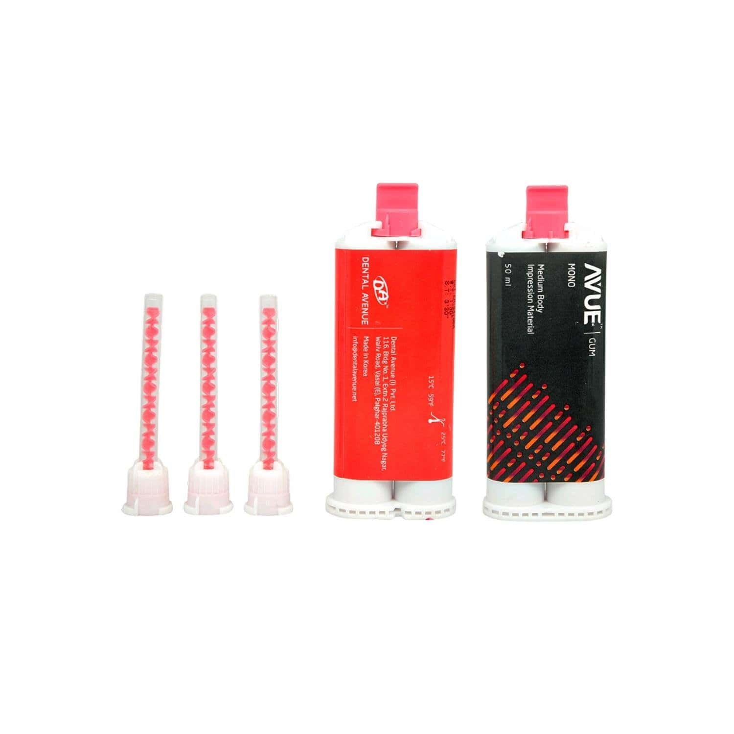 AvueGum Mono is a high-performance monophase impression material designed to combine the most desirable properties of polyether and polyvinylsiloxane (VPS). With its unique gum-like consistency, excellent rheological characteristics, and high tear strength, it delivers precise, reliable impressions in a single-step technique. AvueGum Mono ensures uncompromised physical properties, exceptional hydrophilicity, and outstanding dimensional stability, making it ideal for a wide range of restorative and implant procedures.