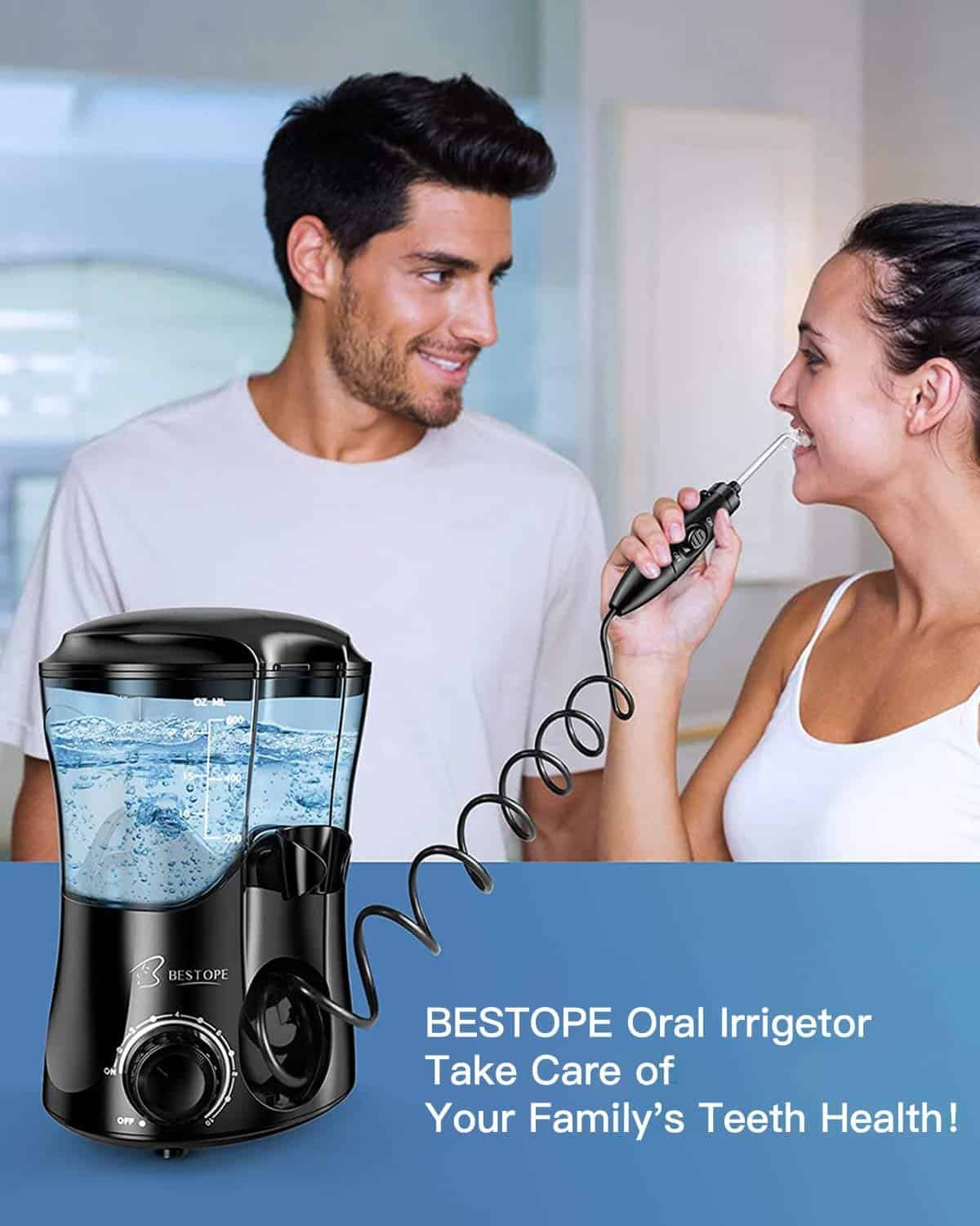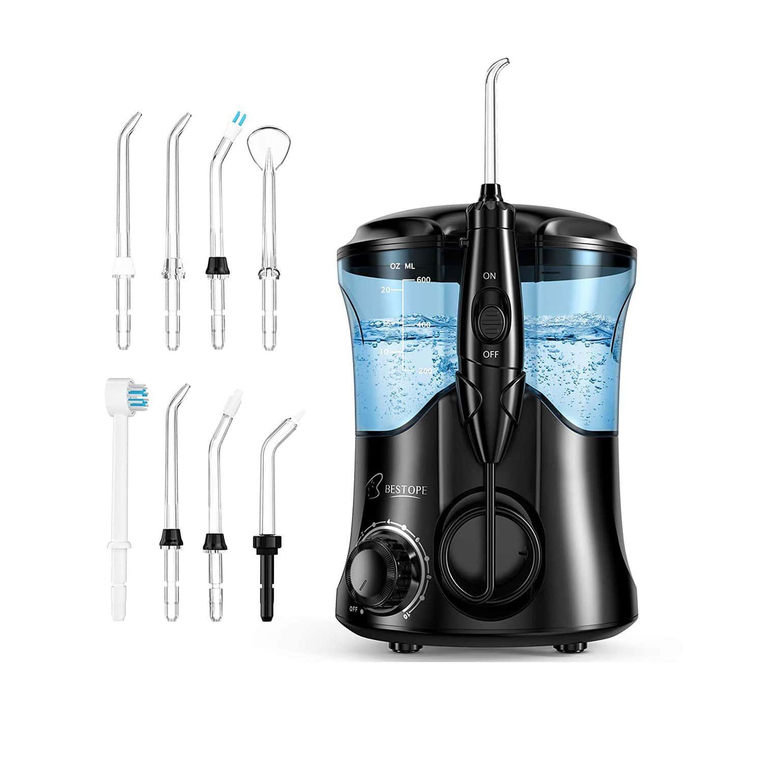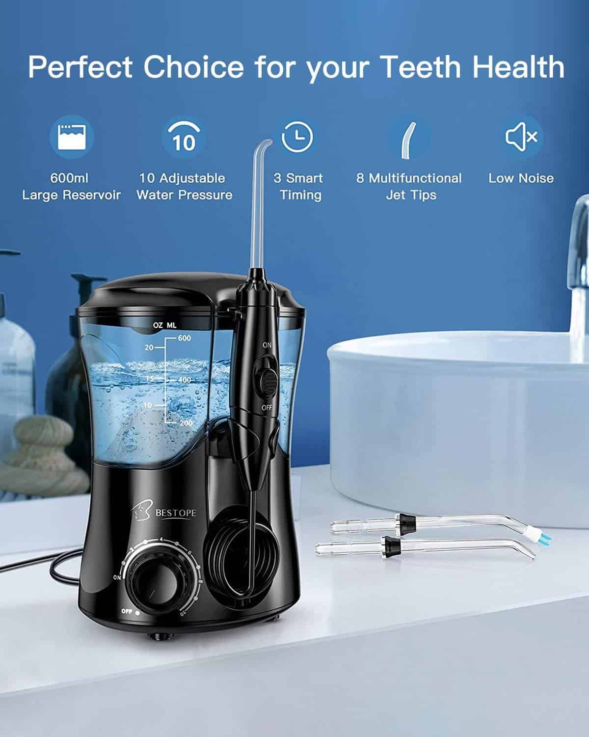 Bestope Water Dental Flosser is a premium-quality electric oral irrigator designed to deliver powerful and effective water flossing for complete oral hygiene. With a large 600 ml water tank, multiple pressure settings, and versatile jet tips, it provides an advanced solution for cleaning teeth, gums, braces, implants, and other dental work.