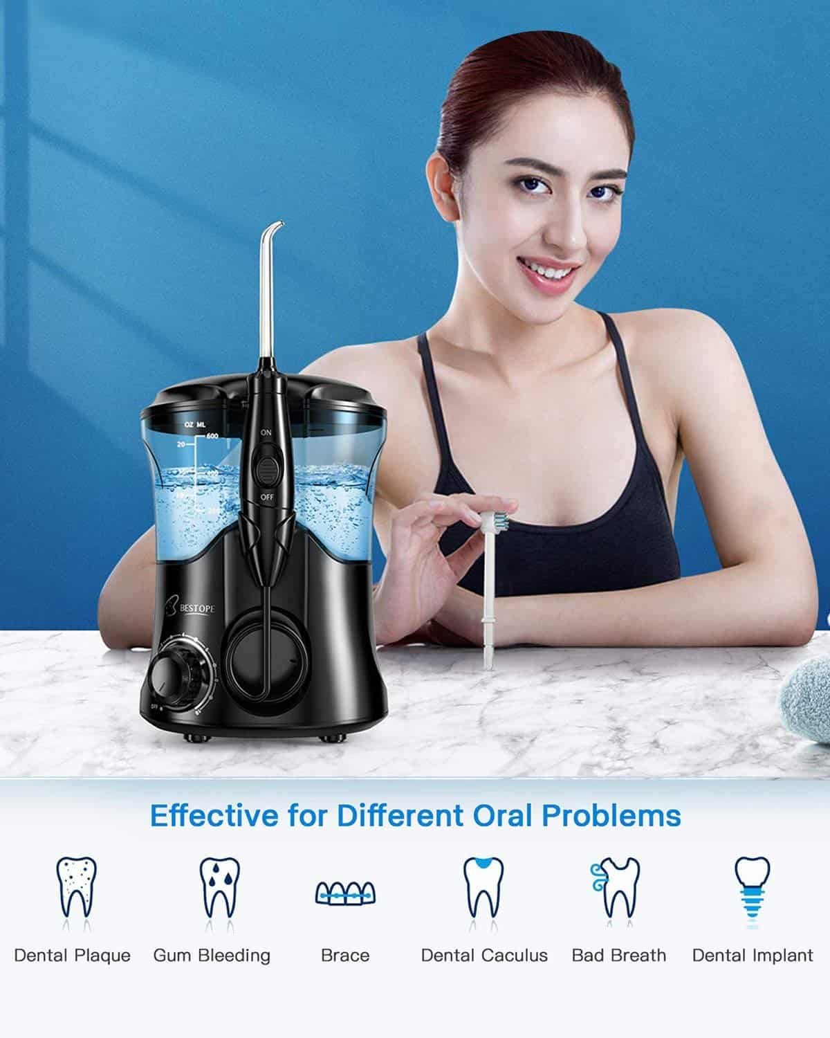 Bestope Water Dental Flosser Oral Irrigator for Teeth Braces Electric Oral Floss Teeth Cleaner Water Jet 600 ML Capacity