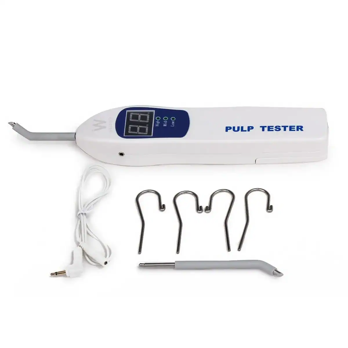 The Dental World Official Electric Pulp Tester is a diagnostic device used to assess the vitality of dental pulp through controlled electrical stimulation. The current stimulates intradental nerves, helping clinicians accurately evaluate pulp response.