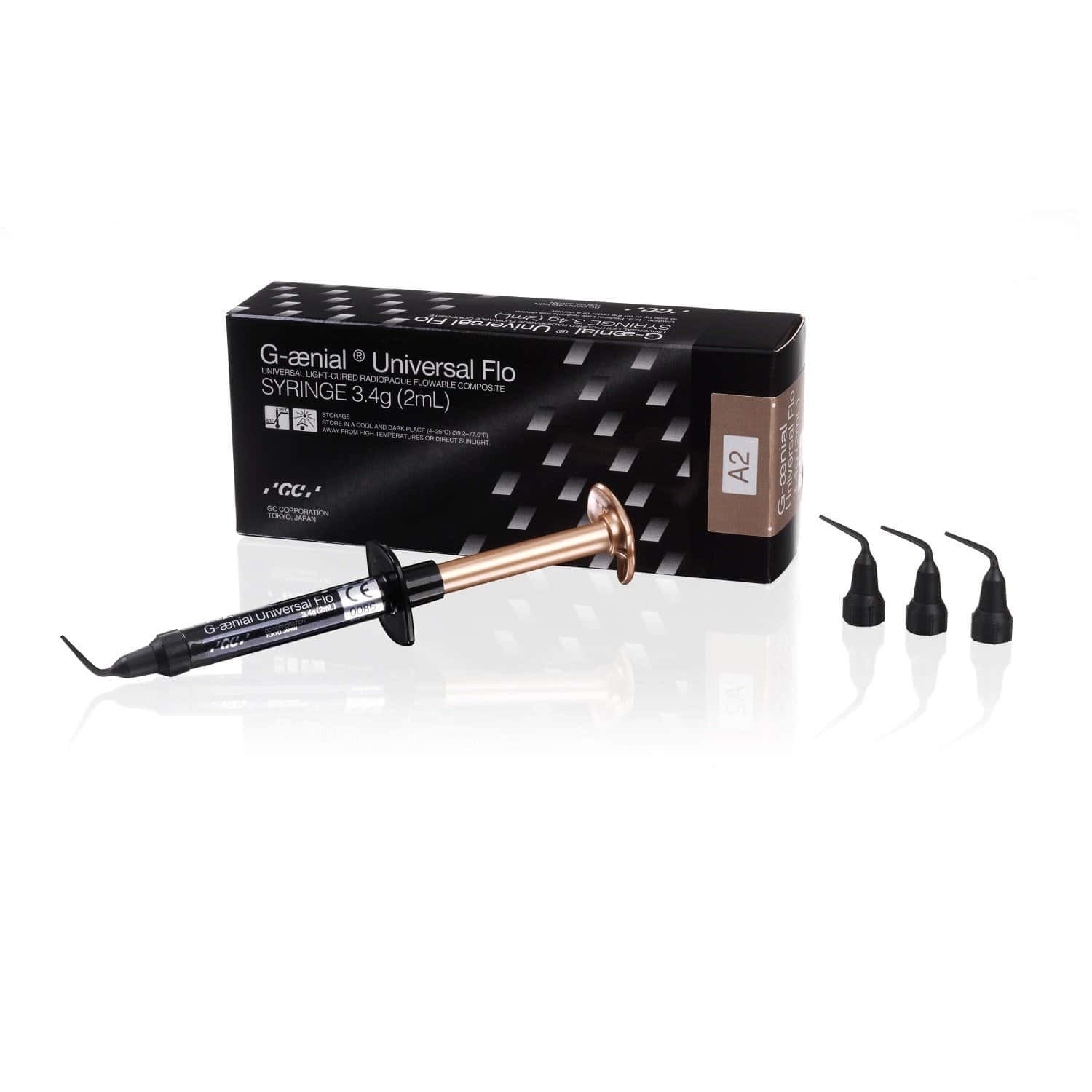 GC G-ænial Universal Flo is an advanced flowable restorative composite that combines injectable viscosity with outstanding physical properties. It allows easy, precise placement even in deep cavities while delivering the strength, durability, and esthetics expected from a conventional restorative composite.