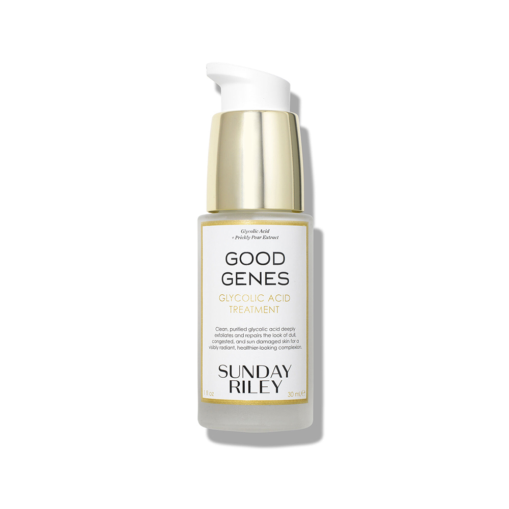 The Sunday Riley Good Genes Glycolic Acid Treatment can be applied as a serum morning and evening each day. Its gentle exfoliation soothes and boosts the complexion when used consistently.