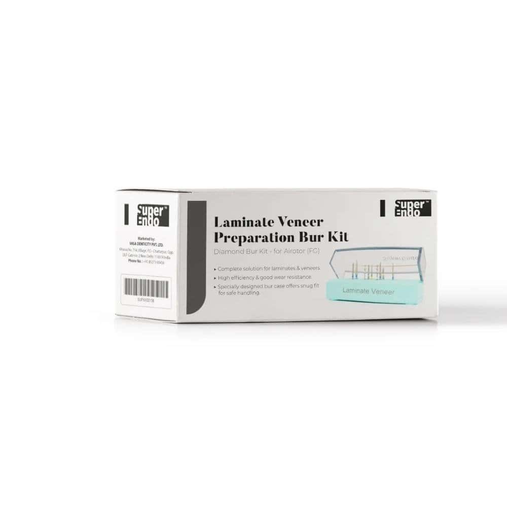 Super Endo Laminate Veneer Bur Kit is a carefully selected assortment of diamond points designed to achieve high accuracy and efficiency during tooth preparation, contouring, and finishing of direct cosmetic restorations. The kit places special emphasis on the preservation of natural tooth structure while delivering precise and predictable results.