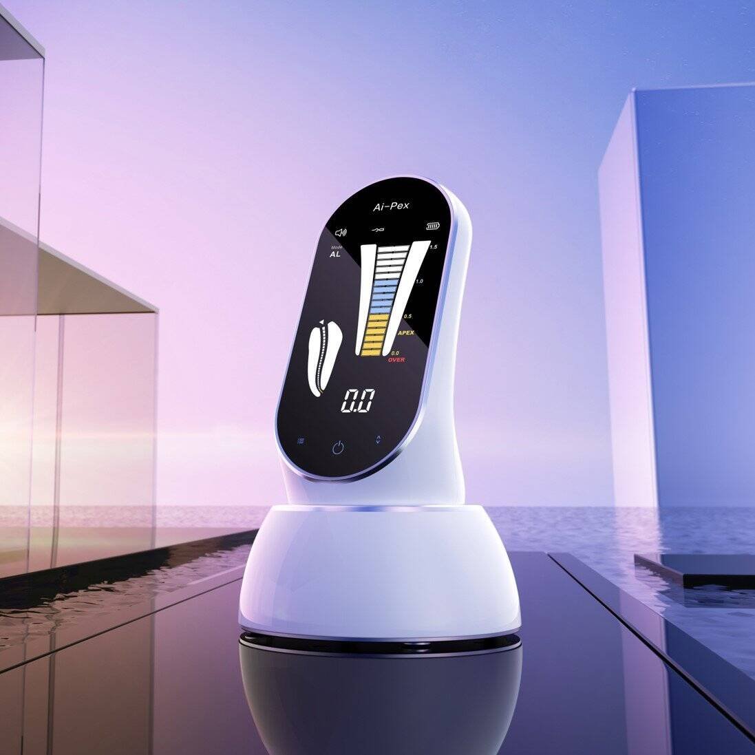 Woodpecker Ai-Pex is an advanced diagnostic endodontic device combining a high-accuracy apex locator with an integrated electric pulp tester. Featuring a 3.8-inch LCD touch screen, it enables precise determination of working length in a wide range of root canal anatomies and reliable assessment of pulp vitality.