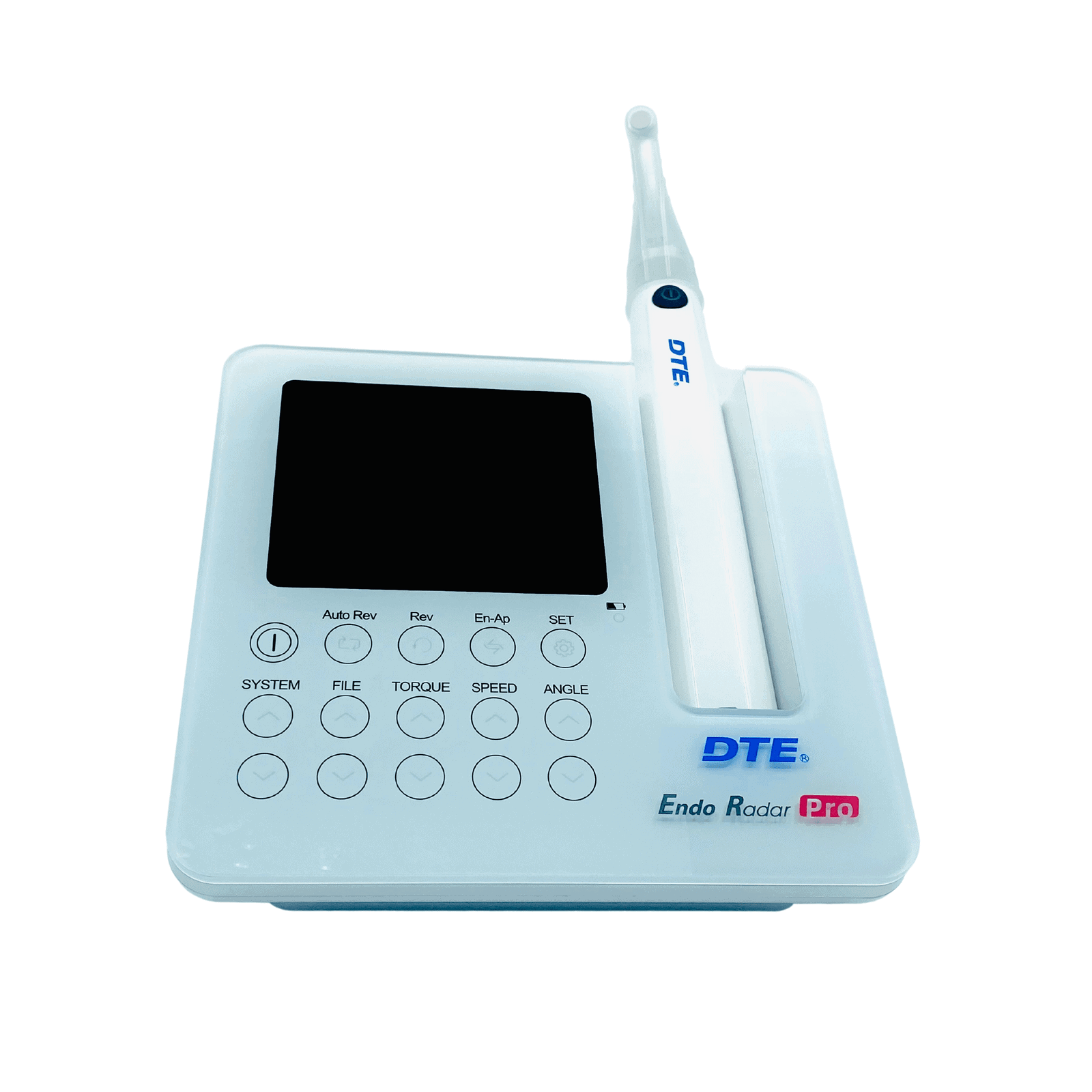 The Woodpecker Endo Radar Pro is a next-generation desk-type brushless endo motor with a built-in apex locator, designed to bring a new experience to root canal treatment. The integrated apex locator and endomotor functions can be used separately or together at the touch of a button, saving space and time while improving efficiency. The cordless handpiece features wireless intelligent charging and USB connectivity, eliminating the need for separate devices for working length determination and root canal shaping.